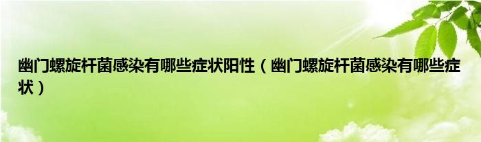 本文,幽门螺旋杆菌感染有哪些症状阳性,幽门螺旋杆菌感染有哪些症状到此就分享完毕,希望对大家有所帮助。