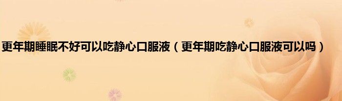 本文,更年期睡眠不好可以吃静心口服液,更年期吃静心口服液可以吗到此就分享完毕,希望对大家有所帮助。