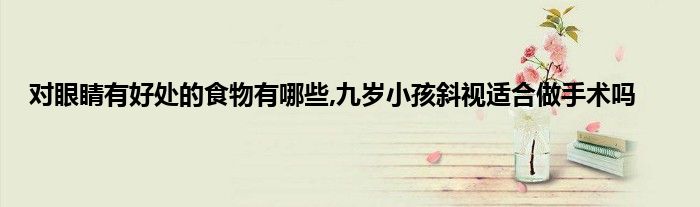 大家好,对眼睛有好处的食物有哪些,九岁小孩斜视适合做手术吗很多人还不知道,现在让我们一起来看看吧!