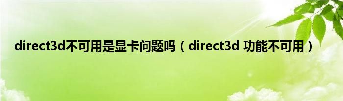 direct3d不可用是显卡问题吗(direct3d 功能不可用)