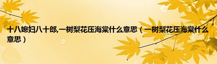 以上就是【十八媳妇八十郎,一树梨花压海棠什么意思,一树梨花压海棠什么意思】相关内容。