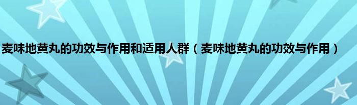 本文,麦味地黄丸的功效与作用和适用人群,麦味地黄丸的功效与作用到此就分享完毕,希望对大家有所帮助。