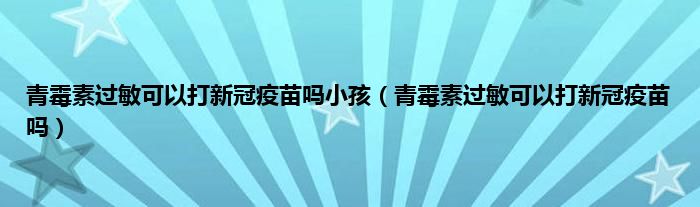 本文,青霉素过敏可以打新冠疫苗吗小孩,青霉素过敏可以打新冠疫苗吗到此就分享完毕,希望对大家有所帮助。
