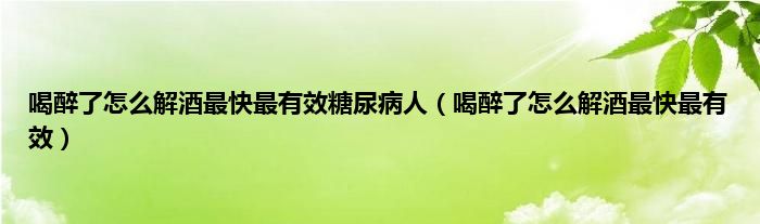 本文,喝醉了怎么解酒最快最有效糖尿病人,喝醉了怎么解酒最快最有效到此就分享完毕,希望对大家有所帮助。