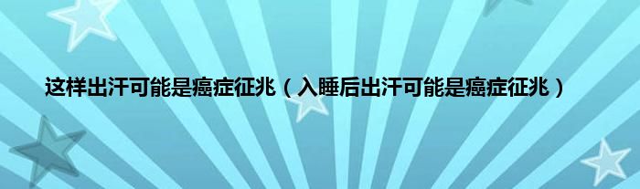 本文,这样出汗可能是癌症征兆,入睡后出汗可能是癌症征兆到此就分享完毕,希望对大家有所帮助。