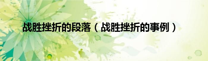 大家好,小问来为大家解答以上问题。战胜挫折的段落,战胜挫折的事例这个很多人还不知道,现在让我们一起来看看吧!