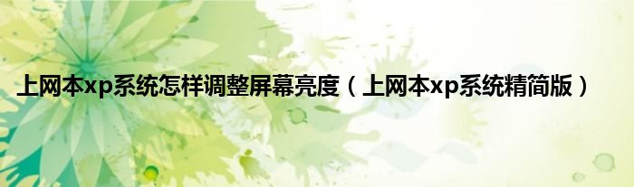 以上就是【上网本xp系统怎样调整屏幕亮度,上网本xp系统精简版】相关内容。