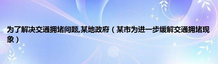大家好,小问来为大家解答以上问题。为了解决交通拥堵问题,某地政府,某市为进一步缓解交通拥堵现象这个很多人还不知道,现在让我们一起来看看吧!