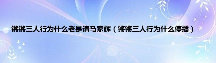 本文,锵锵三人行为什么老是请马家辉,锵锵三人行为什么停播到此就分享完毕,希望对大家有所帮助。