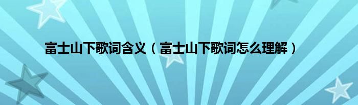 本文,富士山下歌词含义,富士山下歌词怎么理解到此就分享完毕,希望对大家有所帮助。