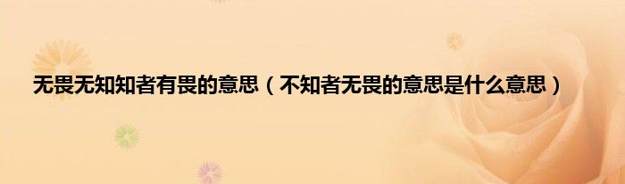 本文,无畏无知知者有畏的意思,不知者无畏的意思是什么意思到此就分享完毕,希望对大家有所帮助。