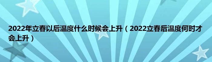 本文,2022年立春以后温度什么时候会上升,2022立春后温度何时才会上升到此就分享完毕,希望对大家有所帮助。