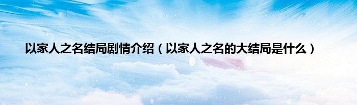 大家好,以家人之名结局剧情介绍,以家人之名的大结局是什么很多人还不知道,现在让我们一起来看看吧!