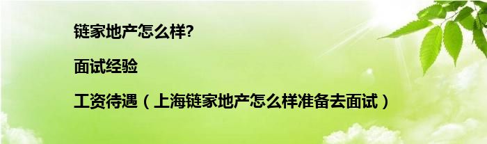 大家好,链家地产怎么样?|面试经验|工资待遇,上海链家地产怎么样准备去面试很多人还不知道,现在让我们一起来看看吧!