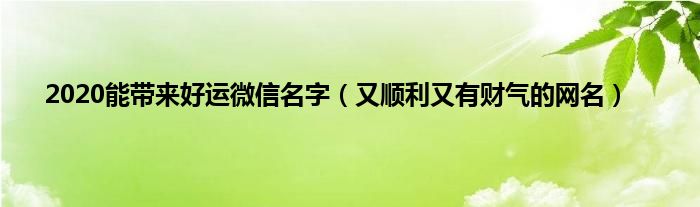 本文,2020能带来好运微信名字,又顺利又有财气的网名到此就分享完毕,希望对大家有所帮助。