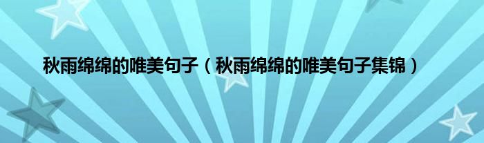 本文,秋雨绵绵的唯美句子,秋雨绵绵的唯美句子集锦到此就分享完毕,希望对大家有所帮助。