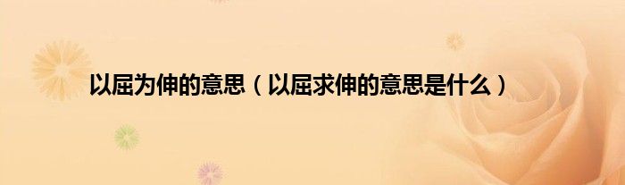 本文,以屈为伸的意思,以屈求伸的意思是什么到此就分享完毕,希望对大家有所帮助。