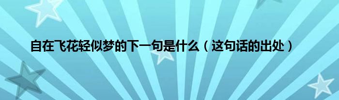 本文,自在飞花轻似梦的下一句是什么,这句话的出处到此就分享完毕,希望对大家有所帮助。