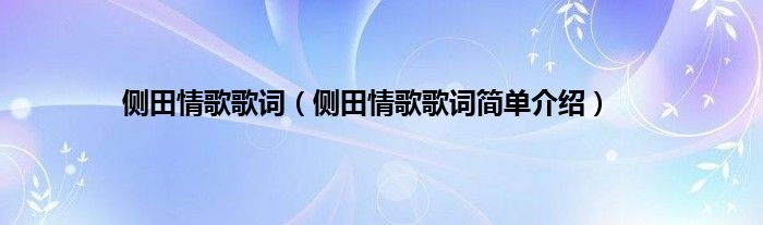 本文,侧田情歌歌词,侧田情歌歌词简单介绍到此就分享完毕,希望对大家有所帮助。