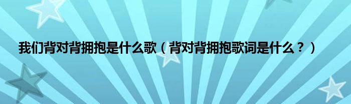 本文,我们背对背拥抱是什么歌,背对背拥抱歌词是什么?到此就分享完毕,希望对大家有所帮助。