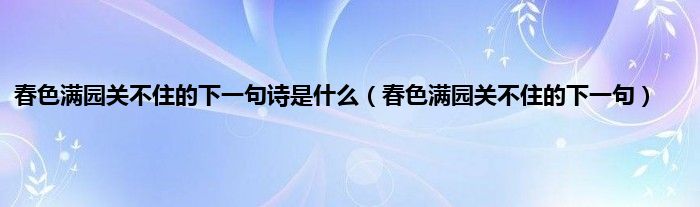 本文,春色满园关不住的下一句诗是什么,春色满园关不住的下一句到此就分享完毕,希望对大家有所帮助。