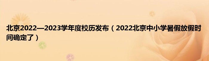 本文,北京2022—2023学年度校历发布,2022北京中小学暑假放假时间确定了到此就分享完毕,希望对大家有所帮助。