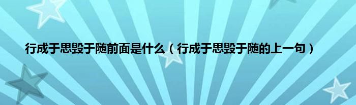 本文,行成于思毁于随前面是什么,行成于思毁于随的上一句到此就分享完毕,希望对大家有所帮助。