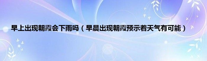 本文,早上出现朝霞会下雨吗,早晨出现朝霞预示着天气有可能到此就分享完毕,希望对大家有所帮助。