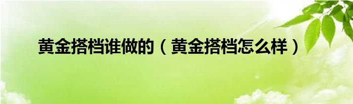 大家好,小问来为大家解答以上问题。黄金搭档谁做的,黄金搭档怎么样这个很多人还不知道,现在让我们一起来看看吧!